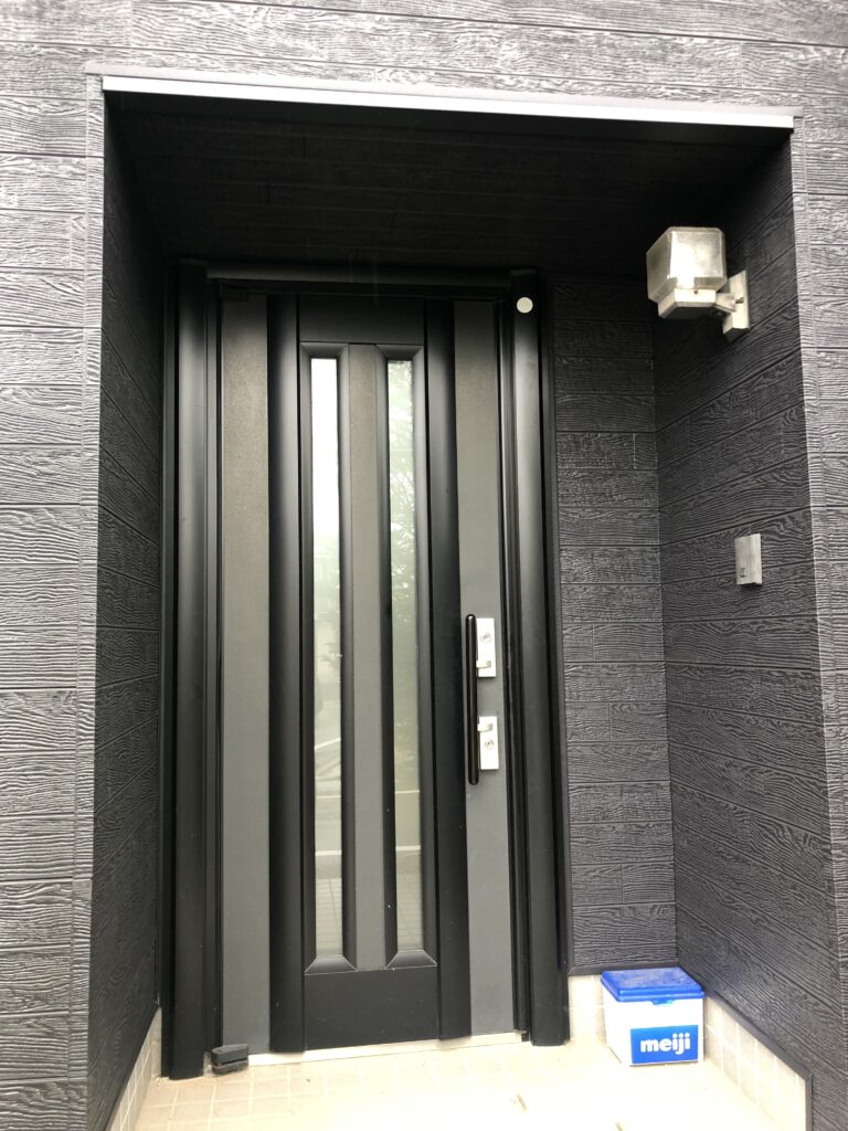 サッシ周りや玄関ドアとのコントラストも美しく、重厚感のある仕上がりになりました。」引き締まったモダンな外観に生まれ変わりました。